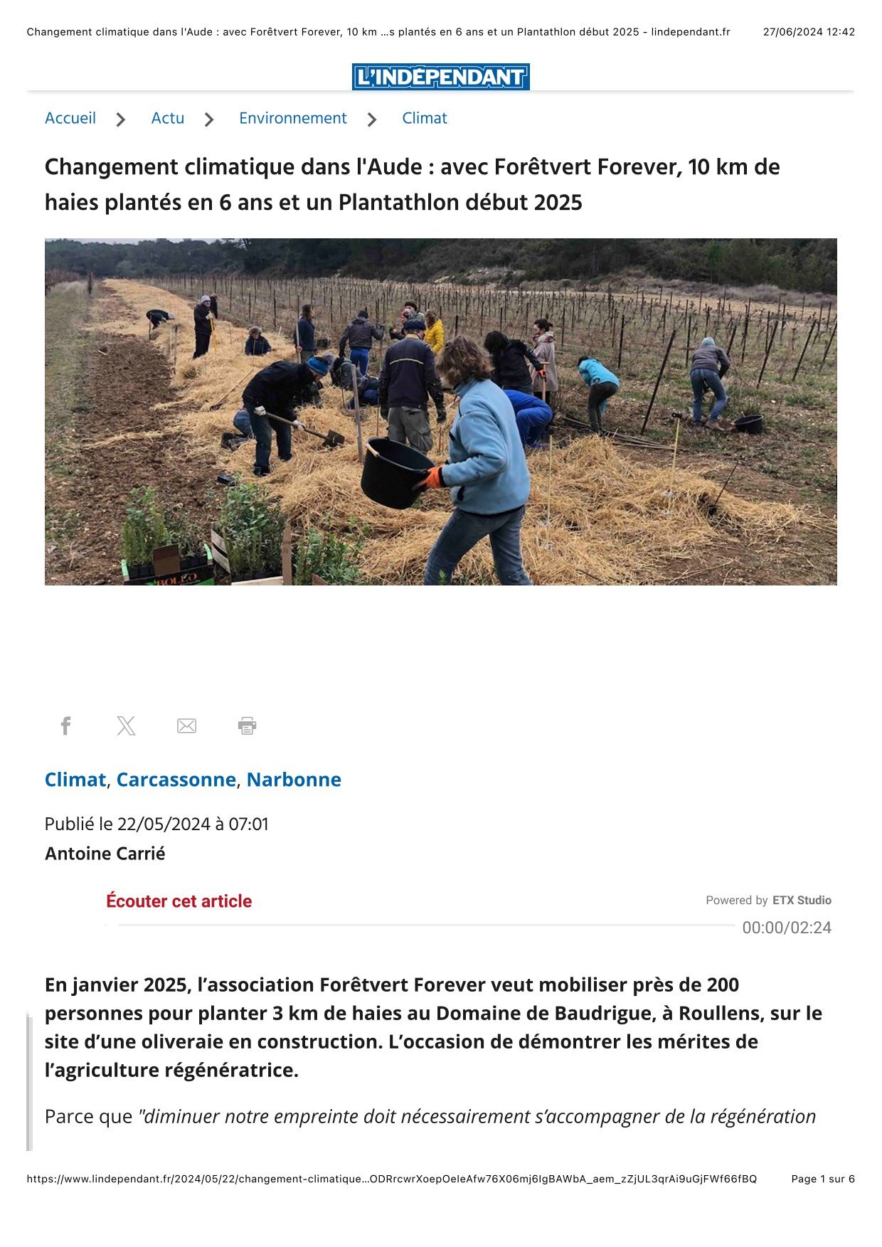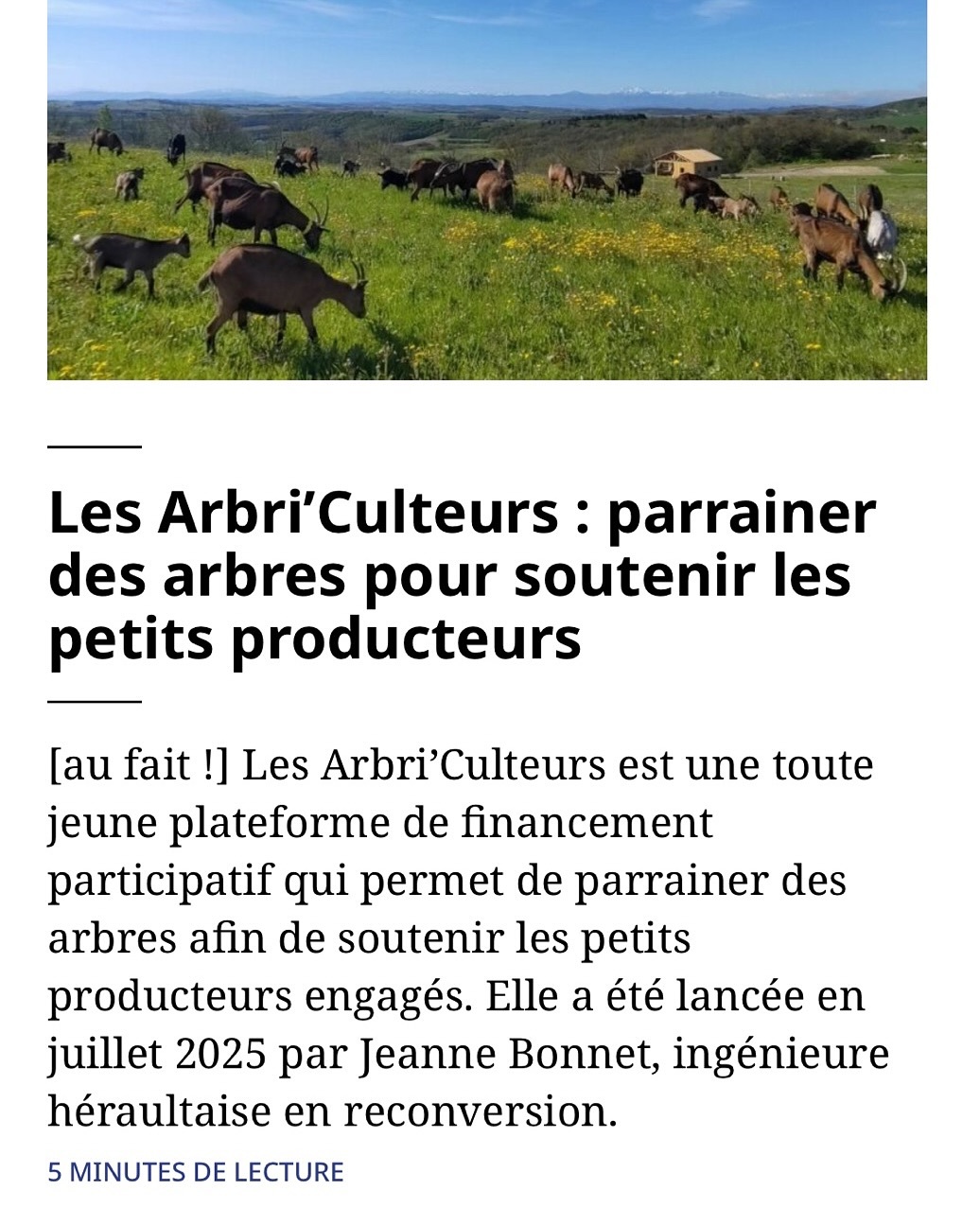 5 septembre 2025 : la campagne de finan­ce­ment des Arbri’­cul­teurs saluée par la presse.