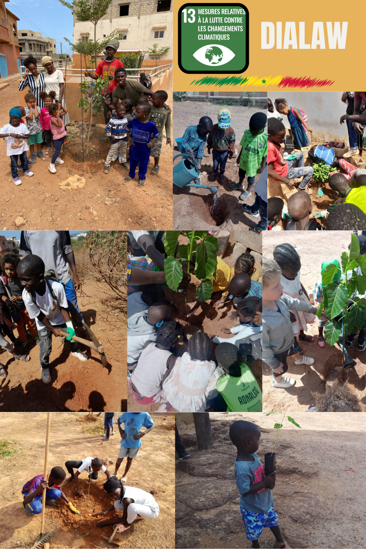 - participation à un projet concret : plantation d’arbres prévues autour de Dakar avec les élèves de l’école de Dialaw en partenariat avec Riad Kawar, l’homme qui plantait des arbres au Sénégal.